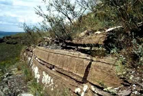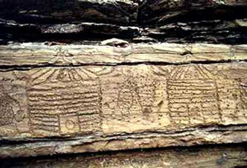 Il lungo fregio decorato, con incisioni che rimandano al periodo delle migrazioni degli Unni (III sec. a.C. II sec. d.C.) del sito di Malaia Boiarskaia Pisanitsa. Foto: Daniele Seglie. The big decorated frieze, with Hun migration period (III sec. a.C. II sec. d.C.)engravings, in the Malaia Boiarskaia Pisanitsa site. Photo: Daniel Seglie. |