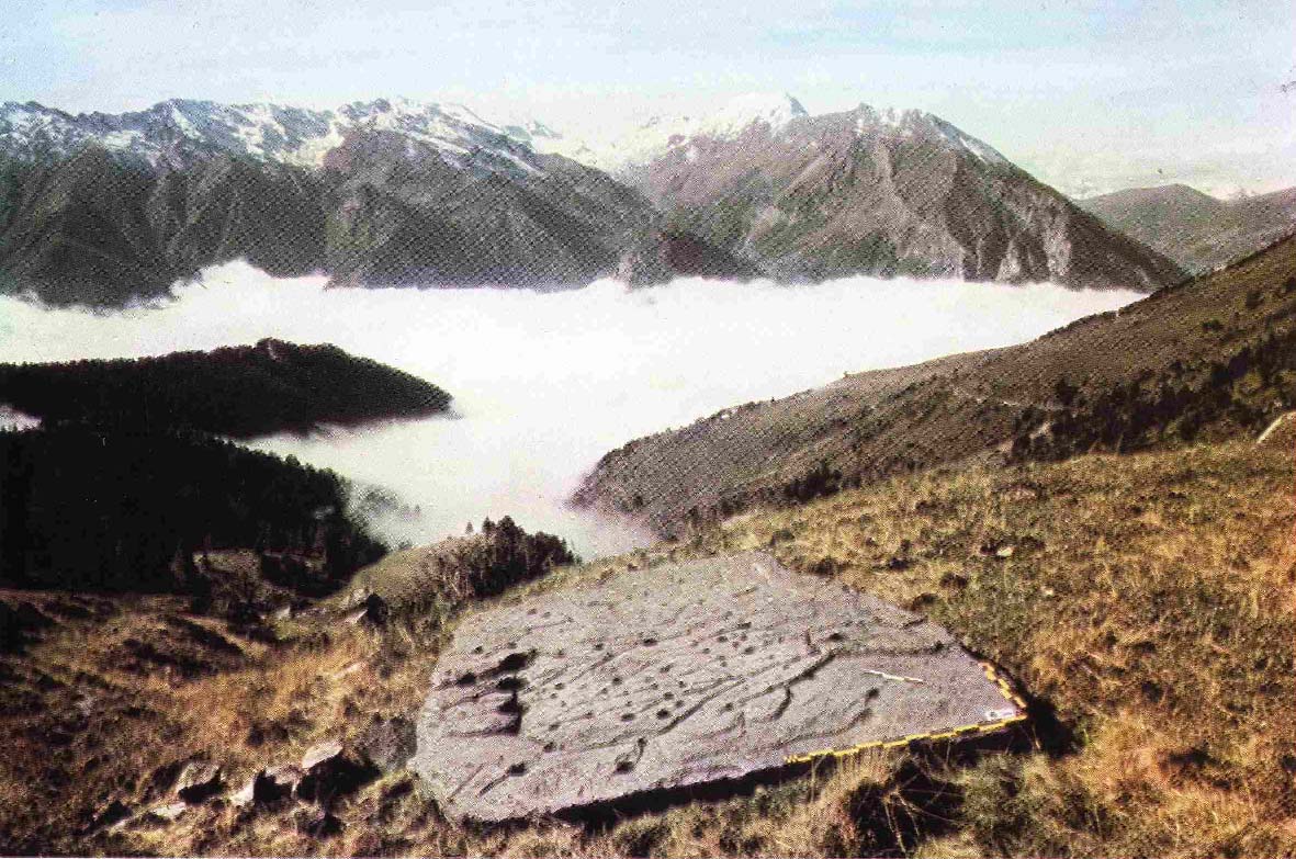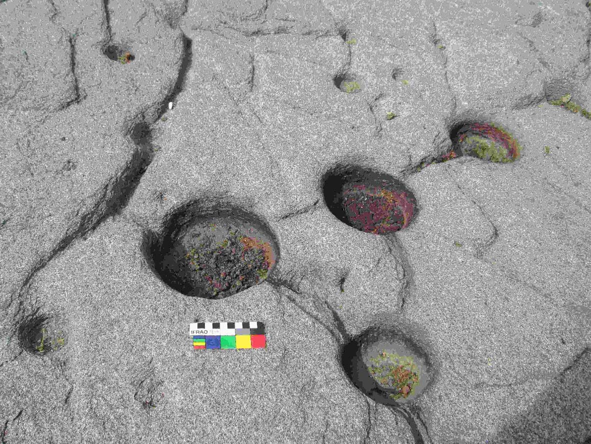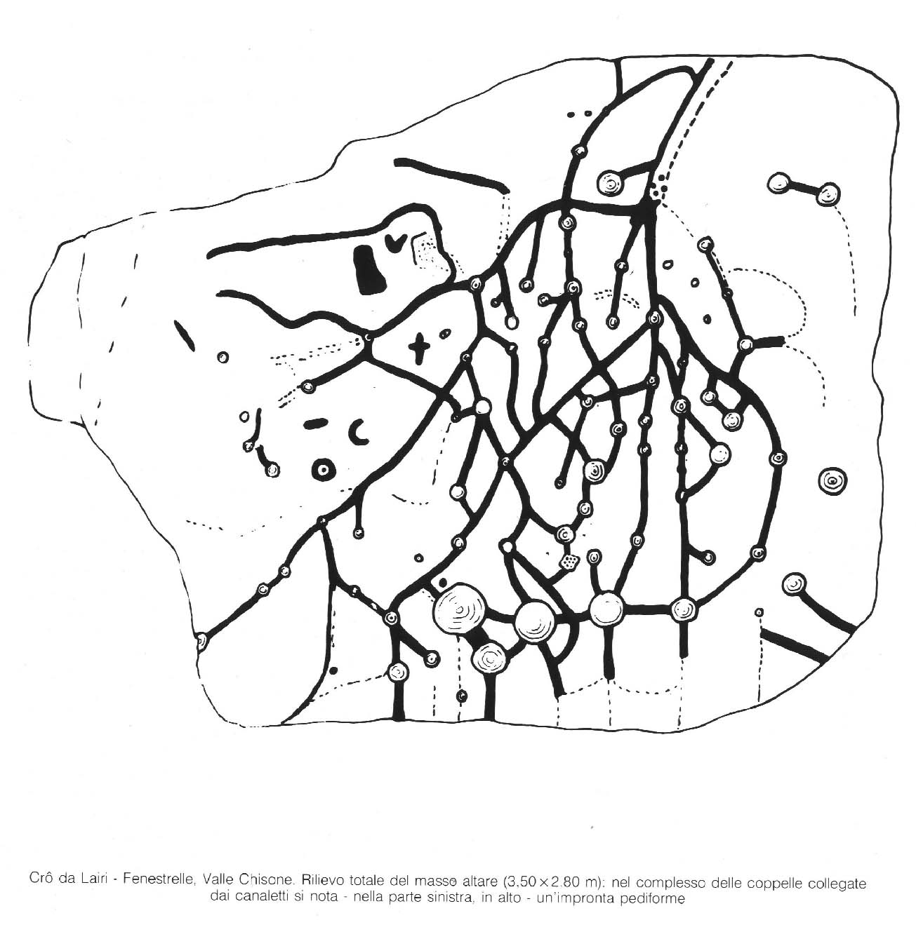 il complesso sistema dei petroglifi incisi sull'ampia superficie rocciosa.